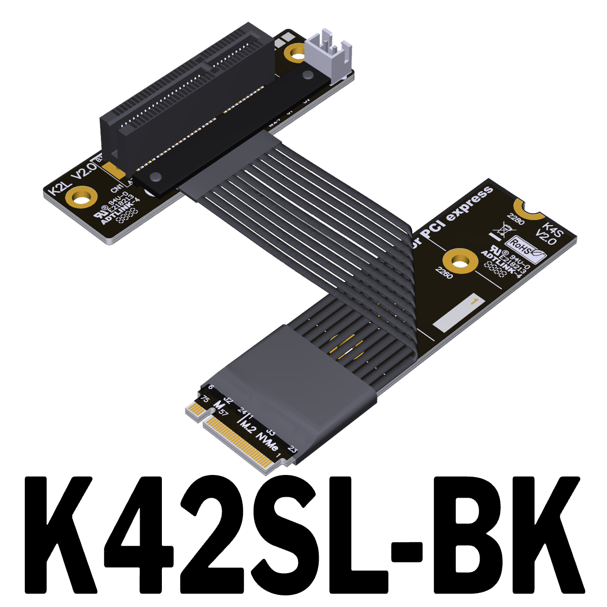 M.2 NVMe to PCIe x4, connector turn 270° extension cable
