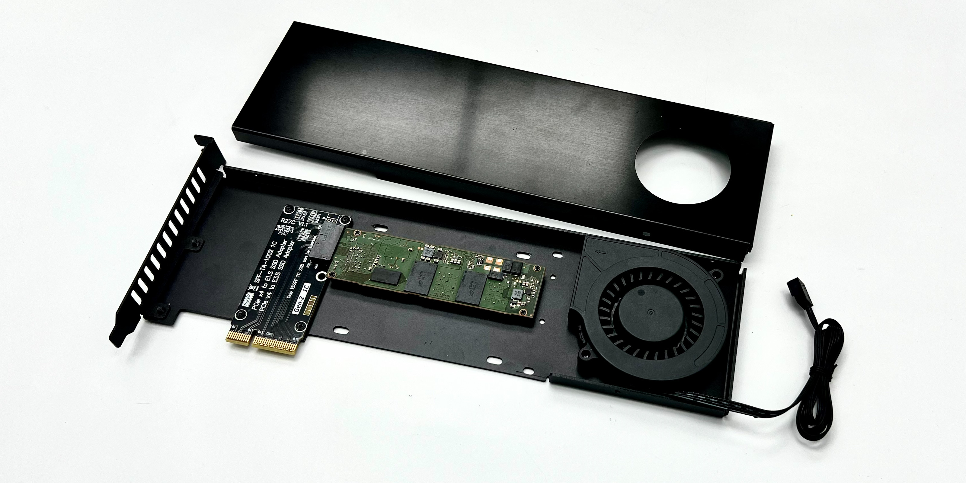 PCIe x4 to E1.S/E3.S (SFF-TA-1002) adapter with shell